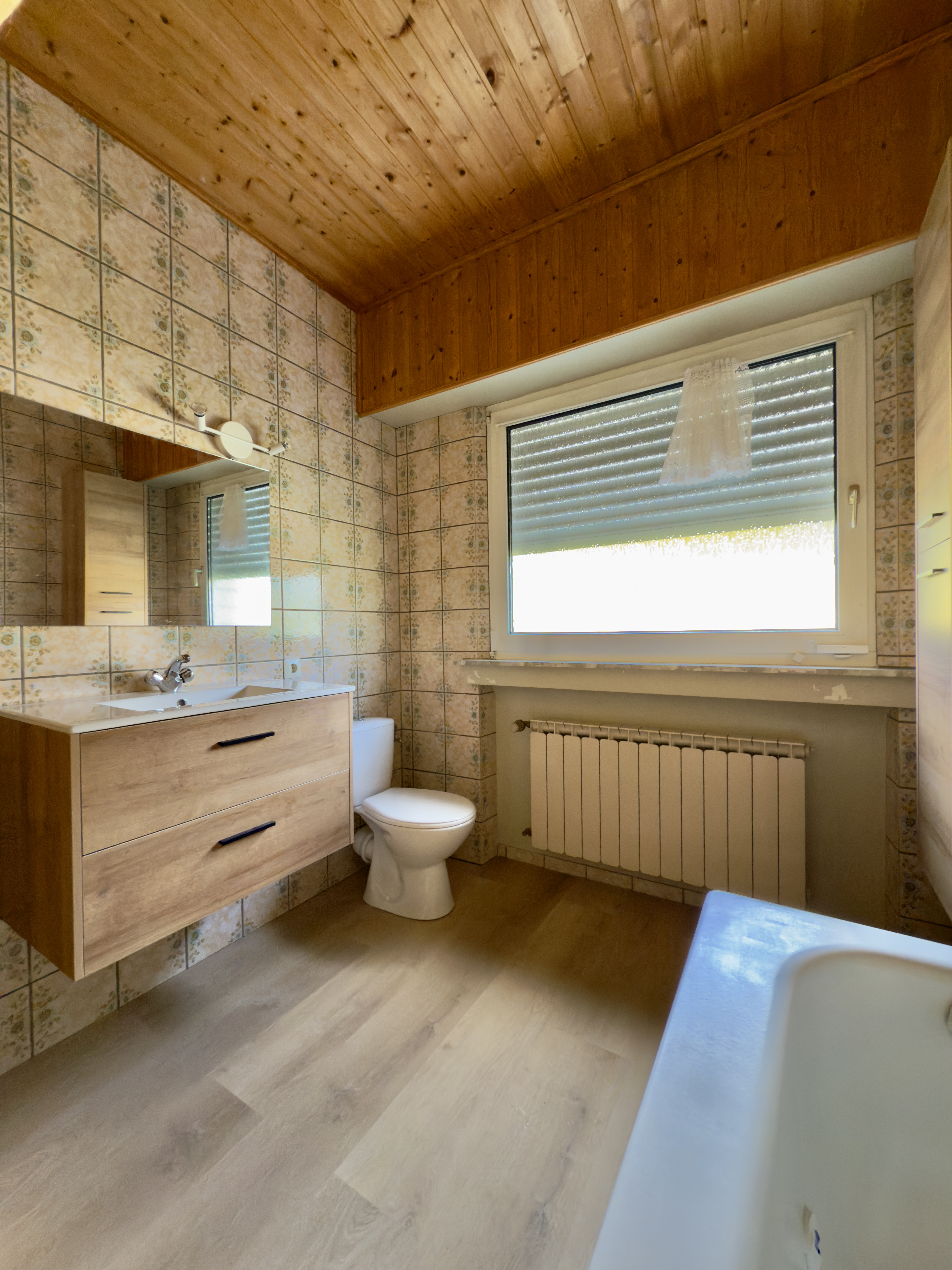 Cette maison mitoyenne vous offre 125 m² de surface, construite en 1979 et bien conservée. Elle comprend deux chambres confortables et une salle de bains équipée pour votre convenance. La cuisine est équipée et séparée, idéale pour les amateurs de cuisine qui apprécient l’espace. Une cheminée ajoute une touche chaleureuse à votre séjour. Profitez pleinement des journées ensoleillées avec un balcon de 20 m² et un jardin de 40 m².